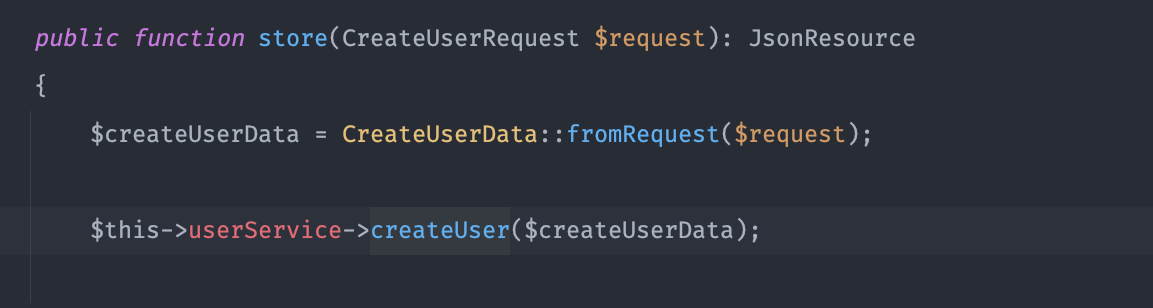 What if we wanted to also create a user, not from a user's request, but let's say a webhook request. Having our DTO as first class citizen for our data, feels clean again. We clearly have a place to map our data: